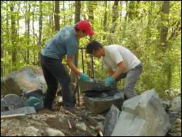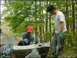 Eagle Scout ProjectTheOrangeHistoricalSocietyhasbeenfortunatetohavetwoEagleScoutprojectsintwoyears, buildingawallinanareathatsurroundswhatwecallthecourtyard. Oncedugout,thecourtyard wasjusttherewithdirtwallssurroundingit. BothMilesO’SullivanandJasonByunsawtheneed forwallsandinthesummerof2019,Milesbuiltonesideandin2020JasonByunandhisfatherbuilt the other side.YouwillonlyseeJasonandhisfatherasCovid-19preventedJasonfromhavinghelpfromother scoutsuntiltherestrictionswerelifted. Usingrocksfromanear-bystream,bothteamsutilized everysinglepiecethatwasoncethelandsurroundingtheSaybrookRiverwhichwindsitsway throughtownnearwheretheBryan-Andrewhousewasbuiltin1740. Thefoundationofthehouse exhibitsthesamebluestone,wecallriverrock.Therockpilewasdeliveredmanyyearsagobythe foreman who built the Goddard School adjacent to the river.